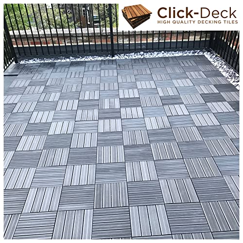 ★ NESSUN ATTREZZO NECESSARIO - Ogni lamella di legno duro è realizzata in solido materiale composito. Lastre per terrazze: 30cm x 30cm x 2,0cm quadrati. Click Deck è come un puzzle e le nostre piastrelle per terrazze possono essere collegate con un sistema di chiusura. Scatena la tua immaginazione e crea il tuo mazzo personalizzato oggi. Le lastre del terrazzo sono alquanto flessibili, quindi possono subire lievi sobbalzi, ma per ottenere i migliori risultati il terreno dovrebbe essere solido.
