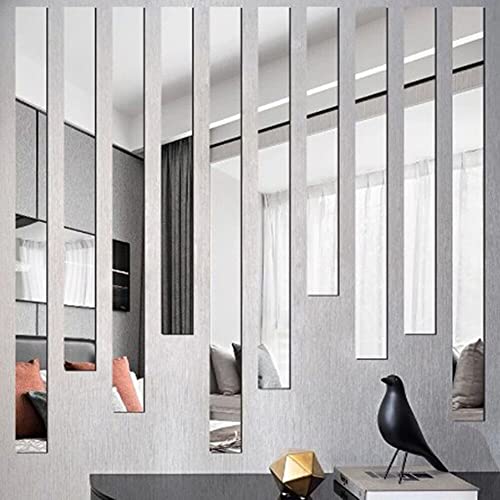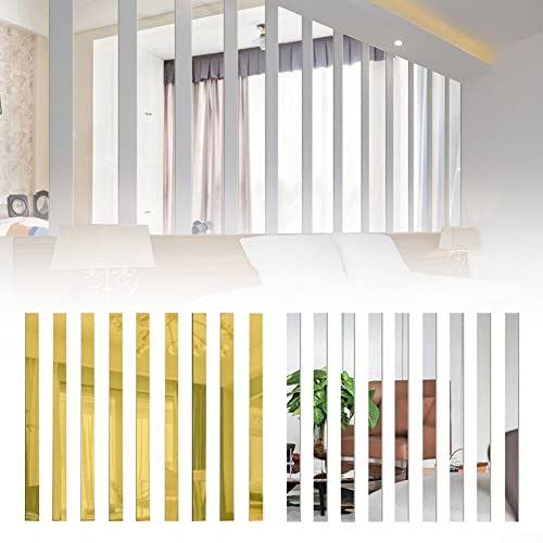 10 piastrelle a specchio, 5 x 50 cm, lunghe a righe, in acrilico, adesivi da parete per casa, soggiorno, camera da letto (argento)