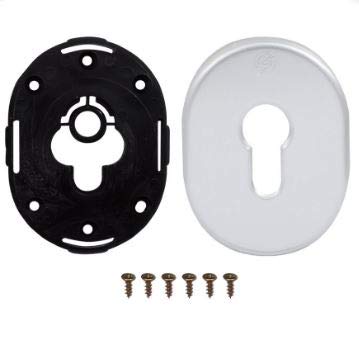 Kit piastrina Securemme cod.4302Kf1 modello ovale per cilindro europeo mm.62x82 finitura alluminio anodizzato argento F1,completa di piastrina e viti per un corretto fissaggio