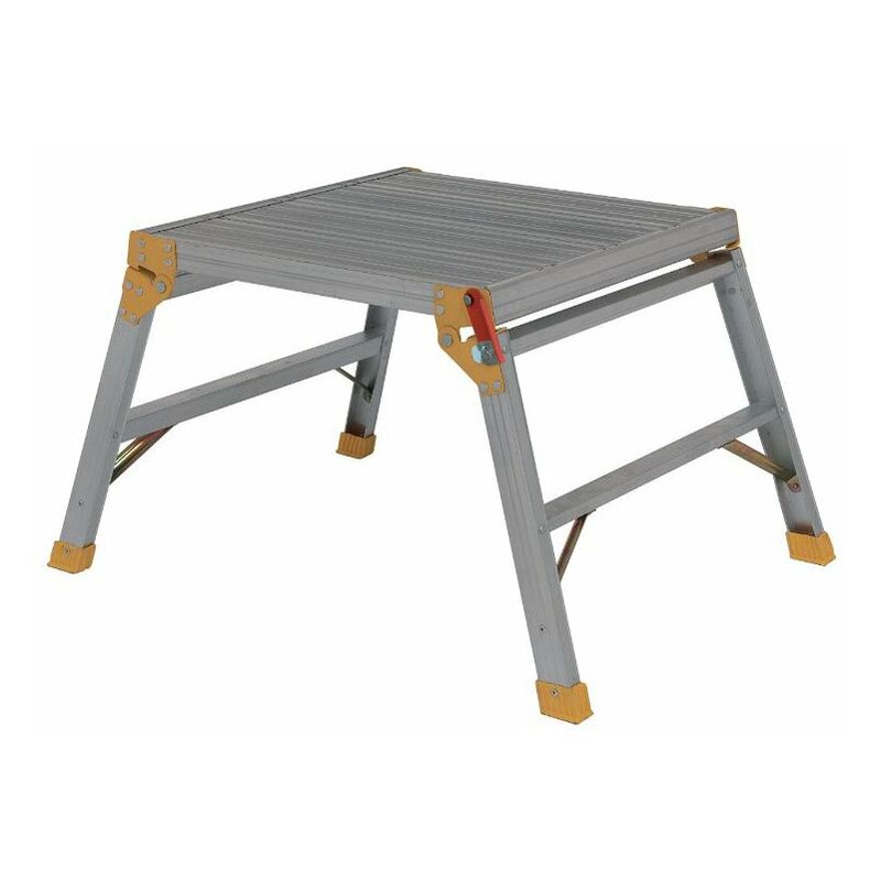 USO: - Materiale per tutti tipi di lavori a bassa quota - Interventi di montaggio di armadi, bricolage, o lavori domestici e fai-da-te. - Lavori di relamping, imbiancatura, elettricità, gestione aria condizionata... CARATTERISTICHE - Grande tavolato antisdrucciolo di 0.60 x 0.60m. - Base svasata per una massima stabilità. - Ingombro minimo piegata per uno stoccaggio facile. - Leggera e facile da trasportare. - Uso semplice: ideale per tutti i piccoli lavori. - Ingombro piegata: 0.63 x 0.68 x 0.18m