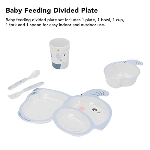 Set da 5 pezzi: il set di piatti divisori per l'alimentazione del bambino include 1 piatto, 1 ciotola, 1 tazza, 1 forchetta e 1 cucchiaio, tutto nel set, nessun acquisto aggiuntivo richiesto, comodo per uso interno ed esterno.