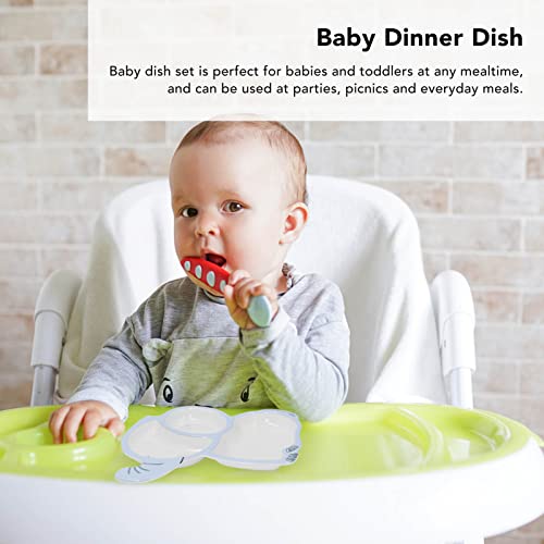 Set di Piatti per Bambini, Materiale in Melamina Cartone a Forma di Elefante Resistente al Calore Antiscivolo Lavabile in Lavastoviglie Piatto per Alimentazione del Bambino con Forchetta Cucchiaio