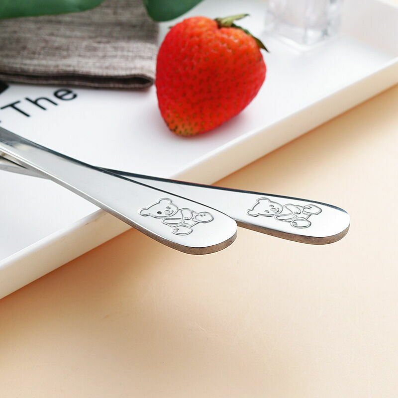 Sicurezza - Il bordo del cucchiaio è arrotondato e i denti corti e smussati della forchetta del bambino sono adatti alla bocca del bambino. [Dimensione] Il set di forchetta e cucchiaio L& #39;