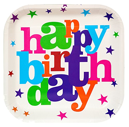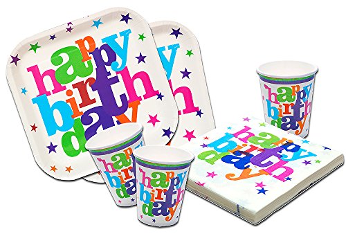 Set di piatti, bicchieri e tovaglioli usa e getta, per festa di compleanno per bambiniSet per festa di compleanno per bambini, composto da 88 pezziStoviglie monouso con messaggio “Happy Birthday"