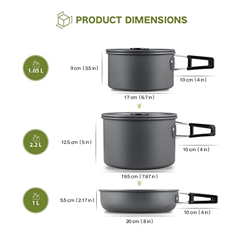 GRANDE CAPACITÀ & ATTREZZATURA COMPLETA: I piatti sono progettati per 5 persone e soddisfano tutte le esigenze di cottura per friggere, mescolare, cuocere a fuoco lento e cucinare durante le escursioni con la famiglia e gli amici