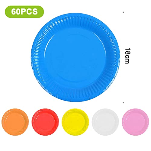 Piatti Carta Colorati, 60 Pezzi Piatti Festa Compleanno, Piatti Carta Compleanno, Piatti di Carta per Feste, Piattini Compleanno Applica a Festa di Compleanno Matrimonio Picnic (18 cm / 7 pollici)