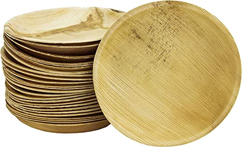 Piatti USA e Getta a Foglia di Palma - Piatti USA e Getta in Fibre Naturali, biodegradabili Leggeri ed ecologici - Tondo 20 cm - per Feste, ricevimenti, Picnic - Confezione da 25 Pezzi