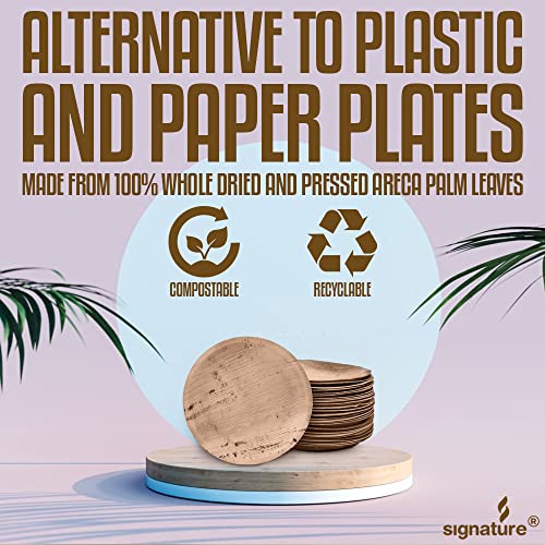 L'alternativa più verde ai piatti di plastica e carta: Sii un amico di madre natura utilizzando materiali usa e getta completamente compostabili e riciclabili. I piatti di palma Signature sono veramente biodegradabili e sono atossici, privi di sostanze chimiche e realizzati al 100% con foglie di palma Areca secche e presse.