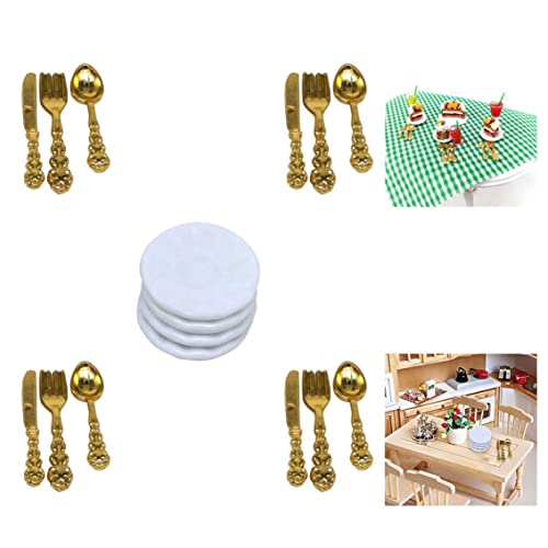 Piatti in miniatura della casa delle bambole con knif e forchette da 12 pezzi, accessori da cucina delle bambole, set di piastre in porcellana Modello 1:12 Decorazione da cucina delle bambole per il