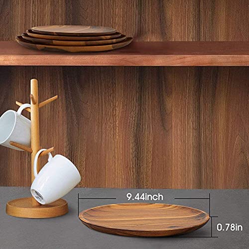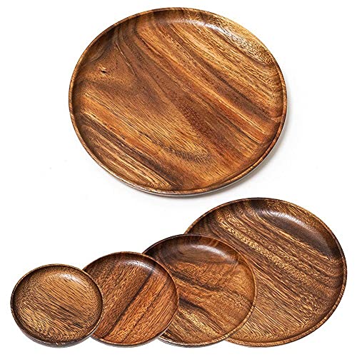 Piatti piani in legno di acacia, rotondi, infrangibili, in legno, per frutta, piatti, snack, dessert, vassoio da portata da 10,5-24 cm