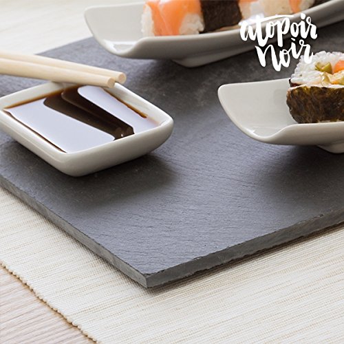 Piatti e posate per sushi con vassoio in ardesia