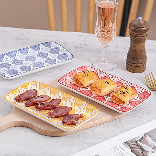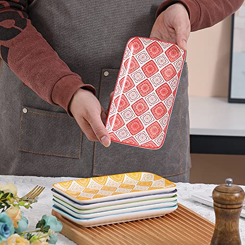 Piatti Servizio Ceramica Piatto Rettangolari - Set Piatti Colorati Design Porcellana - Piccoli Piatti Dessert | Sushi | Aperitivo | Dolce - Adatto per Microonde e Lavastoviglie - 20 x 11 cm - Set da 6