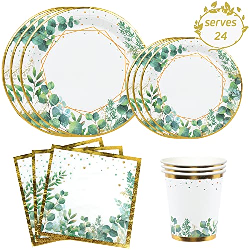 Set di Piatti e tovaglioli di Carta Verde Salvia, 96 Pezzi di stoviglie per Feste in Verde, Piatti per Baby Shower Tazze e tovaglioli per Feste di Compleanno, Baby Shower, di Safari nella Giungla
