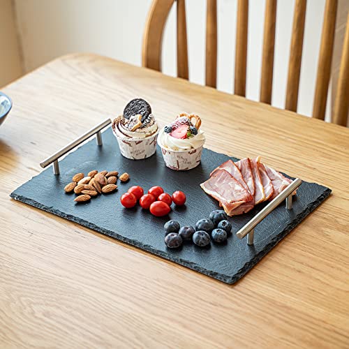 Piatto in ardesia con manici, piatto da portata in ardesia, 38 x 25 cm, con gesso, piatto da portata nero ardesia