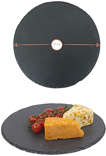 1 Piatto Ardesia Rotonda 25 cm + 1 Vassoio Ardesia 30 x 30 cm, Pietra Nera Naturale con Bordi Finitura Rustica, Protezioni Antiscivolo sulla Base, Adatto per uso Alimentare