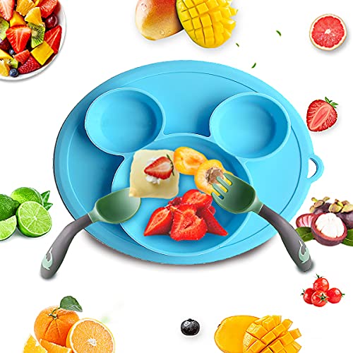 Piatto Bambini Silicone, Senteen 2pcs Piastra Di Aspirazione Portatile Tovaglietta Ventosa Bambini Antiscivolo Piastra Neonato Stoviglie Bambini Svezzamento Per Seggiolone Lavastoviglie e Viaggi