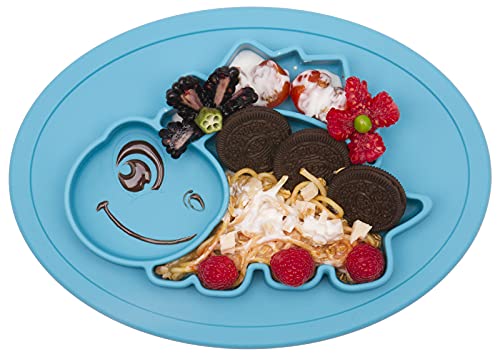 Unico Dinosauro Progettato: tovaglietta silicone con 3 sezioni di cibo progettati per la coltivazione di neonati, bambini e bambini. I colori luminosi allegri e forma simpatico dinosauro sono amati dai bambini di tutte le età, prendere in giro pasti