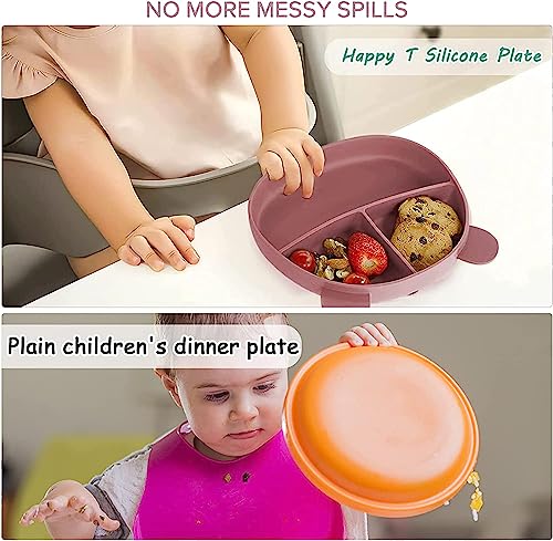 Piatto per bambini in silicone con ventosa, piatto per bambini rosa con ventosa e coperchio, piatto per bambini senza BPA, adatto per microonde e lavastoviglie Piatto per bambini in silicone sicuro