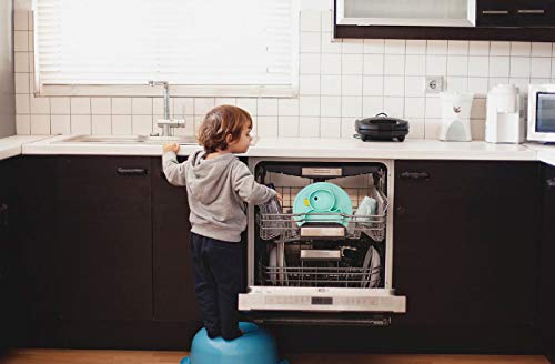 Piatto per bambini, con ventosa antiscivolo, per bambini, con ventose, senza BPA, approvato dalla FDA, lavabile in lavastoviglie e utilizzabile nel forno a microonde (ciano/grigio)