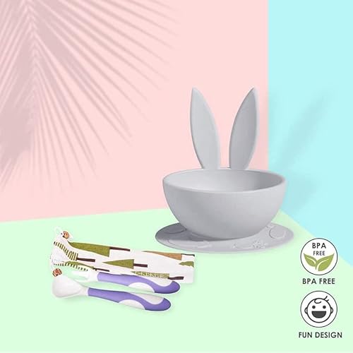 【Meno confusione, più alimentazione】 Base della ciotola di aspirazione forte recentemente migliorata, perfetta per i bambini che si autoalimentano. Rimane sulla maggior parte dei seggioloni per bambini, superfici piane, evitando fuoriuscite, ribaltamenti e schizzi di cibo. La sua simpatica forma a coniglio crea un momento divertente per il tuo bambino. Il design perfetto incoraggia i bambini a mangiare di più e porta gioia ai pasti.