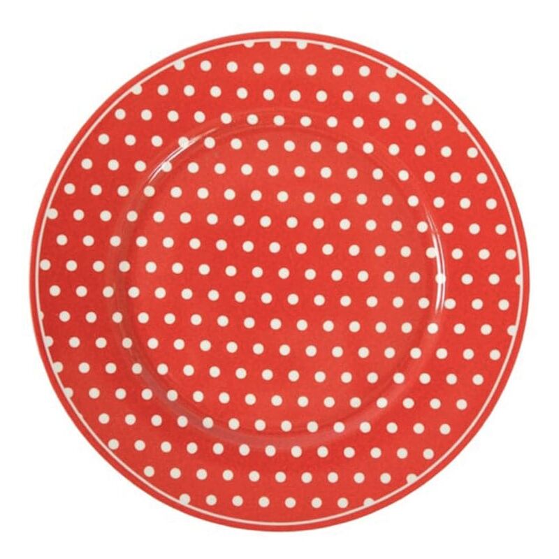 Un carinissimo piatto da dessert, in fine porcellana rossa decorata con pois bianchi. Diametro piatto: 20 cm Colore: rosso a pois bianchi