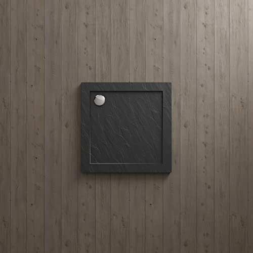 Piatto Doccia 80x80cm Altezza 4cm Effetto Pietra Antracite Acrilico Bordato Piletta di Scarico Inclusa Mod. Petra