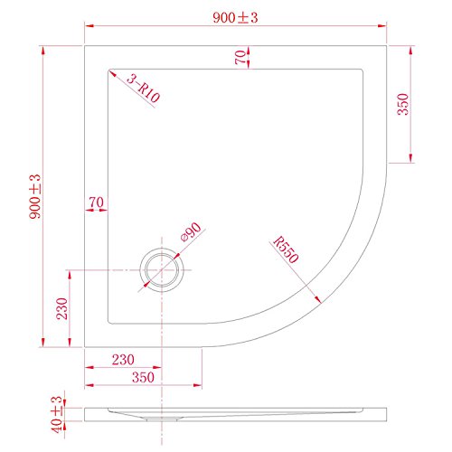Piatto Doccia Acrilico MOD. Flower UltraSlim (90x90 CM Semicircolare, Bianco Lucido)