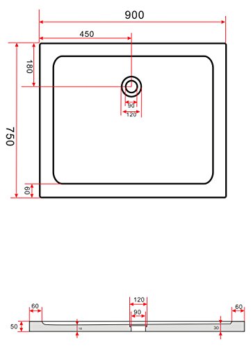 50 mm piatto doccia 90 x 75 cm