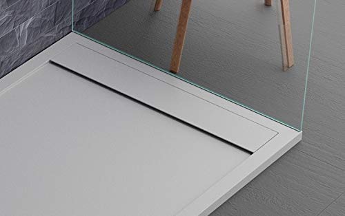 Piatto doccia color grigio chiaro, design moderno, modello Siviglia, in Mineralmarmo effetto pietra ardesia, luxury, gelcoat, slim 3cm 70x110