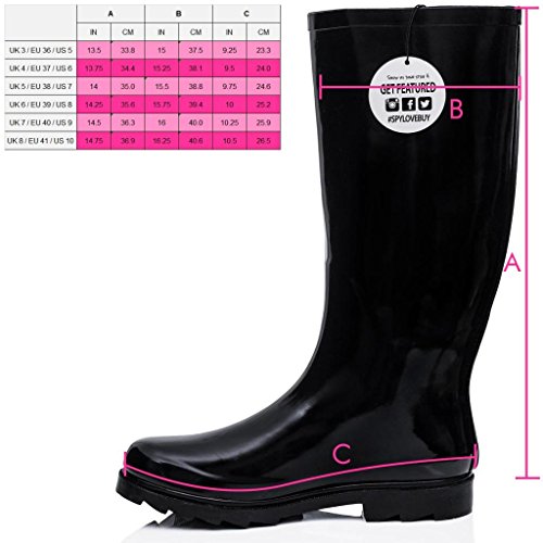 Piatto festival stivali da pioggia Wellington stivali nero UK 5