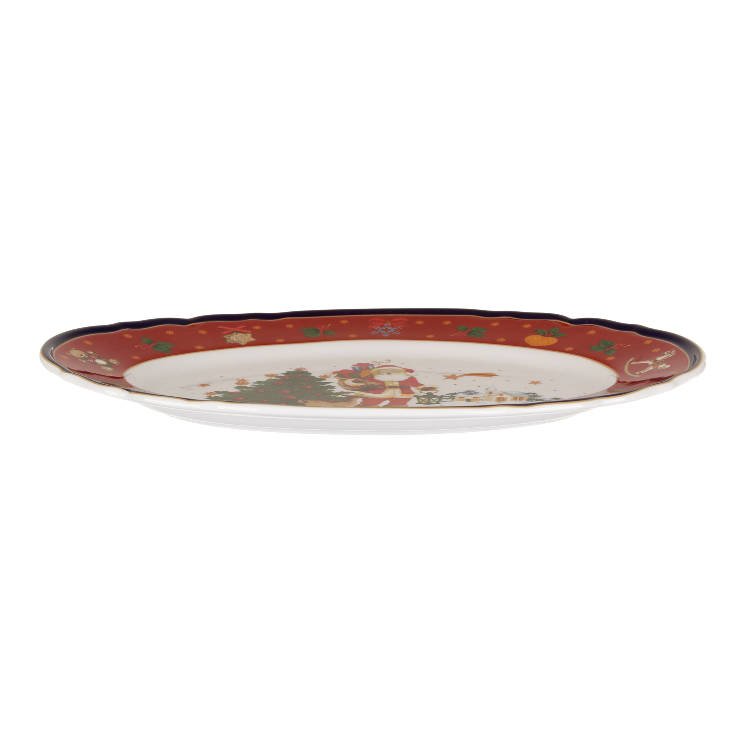Allegro e colorato piatto da portata con decori natalizi, ideale per portare in tavola gustose specialità da condividere con i propri ospiti. Perfetto sia per disporre invitanti antipasti che per presentare primi e secondi da servire nel proprio piatto. Aggiungerà una nota di colore sulla tavola e completerà alla perfezione il tuo set di Natale.