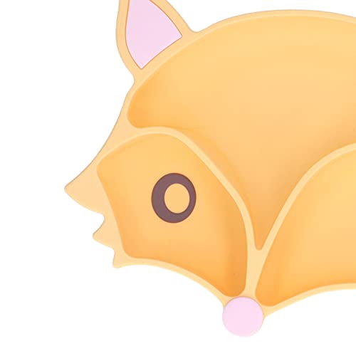 Piatto in Silicone per Bambini Simpatica Forma di Volpe Piatto Diviso in 3 Scomparti per Bambini Sopra i 6 Mesi (Giallo)