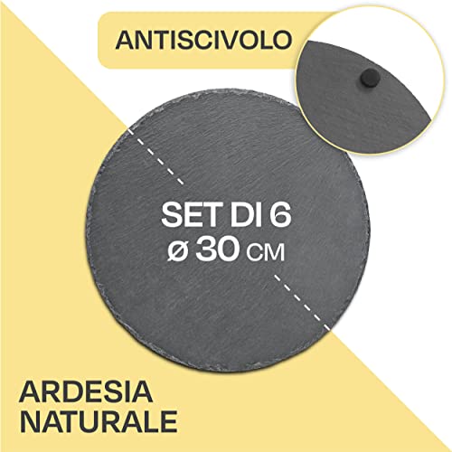 Piatto Tondo in Ardesia da 30 cm - Set di 6 - Per Servire o Decorare - Pietra Naturale - Antiscivolo
