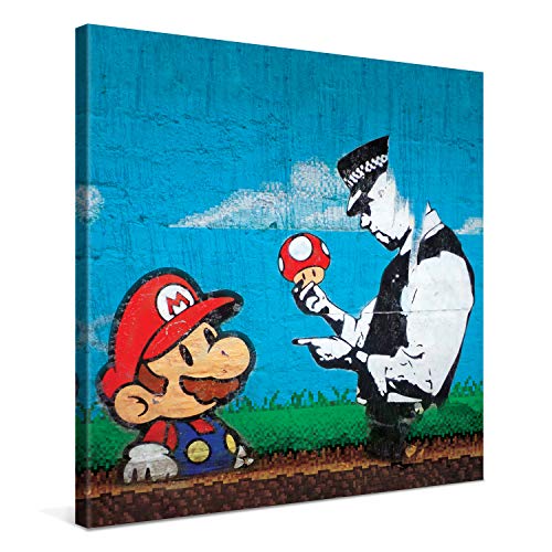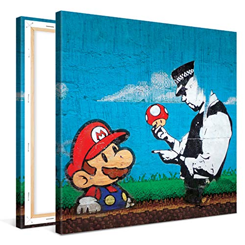 PICANOVA - Quadro Su Tela - Mario Cop 80x80cm - Stampa Incorniciata Con Spessore Di 2cm Altre Dimensioni Disponibili Decorazione Moderna - Collezione Banksy Style Graffiti