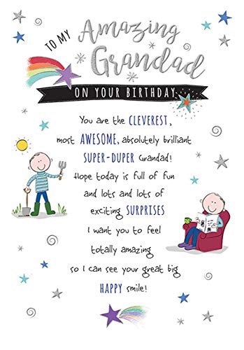 Piccadilly Greetings Group Ltd Amazing Cleverest Awesome Grandad biglietto di auguri di compleanno - 17,8 x 12,7 cm, grigio