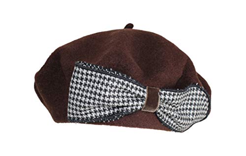 Piccarda Basco alla Francese per Donna, Berretto in Lana, Cappello Invernale con Fiocco in Pied de Poule, by Complit (Marrone)