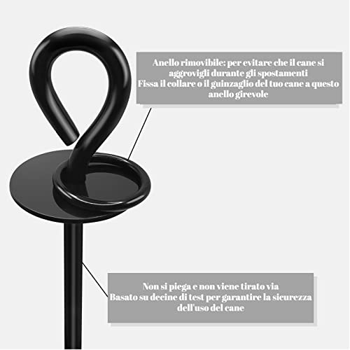 Adatto a un'ampia gamma di superfici: I pali a spirale possono essere utilizzati ovunque. Per esempio, in giardino / in campeggio all'aria aperta / sul pavimento della spiaggia. L'anello di libera circolazione sul paletto consente di tenere al guinzaglio almeno 2 cani e assicura che i cani possano muoversi liberamente senza aggrovigliarsi.