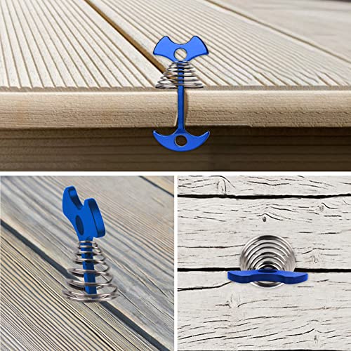 Picchetti Fishbone, 8 pcs Tenda da Campeggio, Fishbone Tenditore Tende da Ancora Lega di Alluminio, Portatile Ancoraggio Tenda con Fibbia a Molla, Antivento Deck Gancio per Tenda Escursioni (Blu)