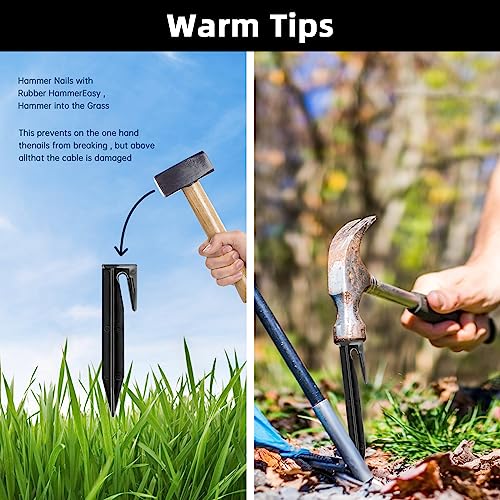Materiale di alta qualità: realizzato in plastica estremamente forte e resistente alle intemperie. Pertanto, i chiodi sono molto stabili e durevoli, anche se i cavi sono fortemente allungati, non si rompono. I chiodi sono saldamente ancorati al terreno.