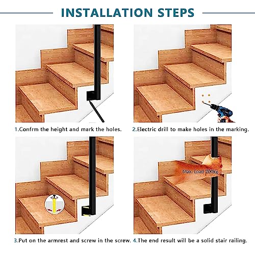 ✔ 【Facile da installare】: il bracciolo viene fornito con tutti gli accessori di installazione, facili da installare. I binari per scale possono essere installati su qualsiasi gradino piatto in legno, vinile, mattoni, stucco e cemento.
