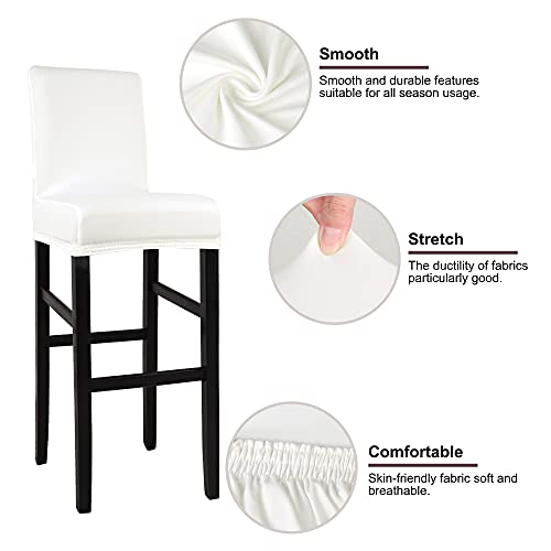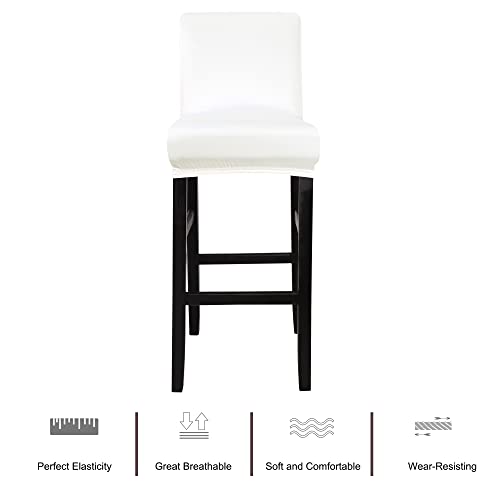 PiccoCasa - Coperture elastiche per sgabello da bar, coperture per sedia senza braccioli, coprisedia per sgabelli per pub e piano di lavoro in cucina, con fascia elastica, colore bianco neve, 4 pezzi