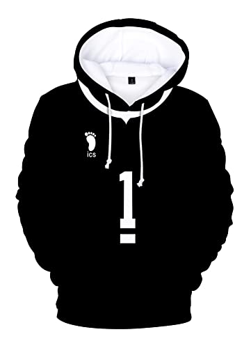 Piccodos Anime - Felpa con cappuccio, unisex, con stampa 3D, motivo "Inarizaki" High School Volleyball Club Kita Shinsuke No.1, costume cosplay con tasche, nero, XXS (petto 86 cm)