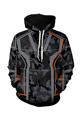Piccodos Felpa con cappuccio unisex con stampa 3D anime, con cappuccio tony Supereroe, colore nero, taglia 3XL (petto 119 cm)