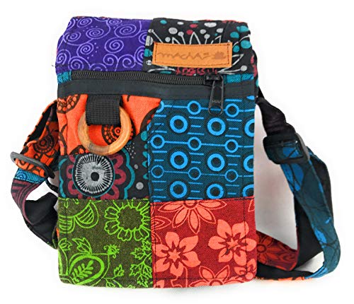 Piccola borsa a tracolla etnica per donne in cotone, Multicolore