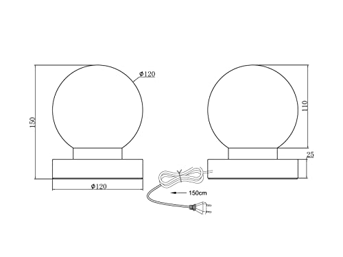 Dimensioni: altezza 15 cm, diametro 12 cm, base in metallo ottone opaco, sfera in vetro bianco