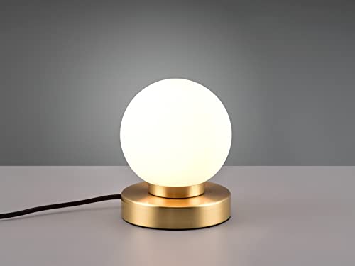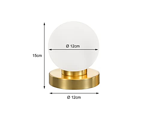 Piccola lampada da tavolo Touch altezza 15 cm sfera di vetro bianco, base in ottone