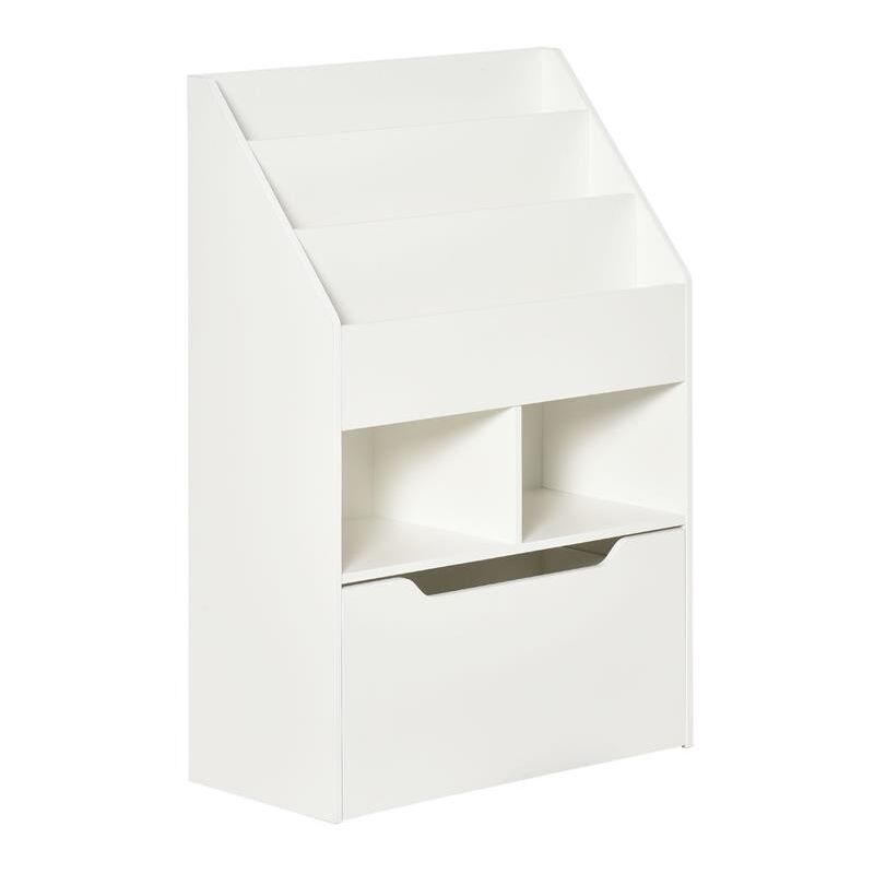 Piccola Libreria per Bambini con Ripiani e Cassetto in MDF. 60x29.9x90cm. Bianco La cameretta è sempre in disordine e hai bisogno di trovare spazio ai libri dei tuoi bimbi? Scegli la libreria per bambini. realizzata in legno e MDF e progettata per durare nel tempo. Perfetta per riporre i libri e da usare come scaffale per giocattoli. è composta da 3 ripiani. 2 vani aperti e un ampio cassetto. Il rivestimento in melamina la rende facile da pulire e il dispositivo antiribaltamento garantisce un uso sicuro. Libreria per bambini a 3 ripiani con vani aperti e ampio cassetto per libri. riviste. giochi. ecc. Cassetto con ruote per un migliore scorrimento. Struttura in legno e MDF per durare a lungo. Dispositivo antiribaltamento da fissare al muro per una maggiore stabilità e sicurezza. Montaggio richiesto. Questa libreria per bambini è la soluzione ideale per mantenere la cameretta ordinata e sicura. offrendo uno spazio funzionale e duraturo per i tuoi piccoli.