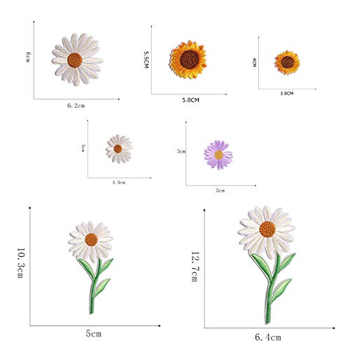 Piccola Margherita Patch,Xiuyer 21pcs Toppe Termoadesive Fiore Piccola Margherita Girasole Toppe Applique Distintivi per Vestiti Tessuti DIY Decorazione