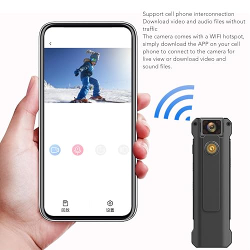 Piccola Telecamera Indossabile WIFI, Videocamera con Clip Posteriore HD 1080P, Rilevamento del Movimento con Obiettivo Regolabile a 180 Gradi, Videocamera Tascabile