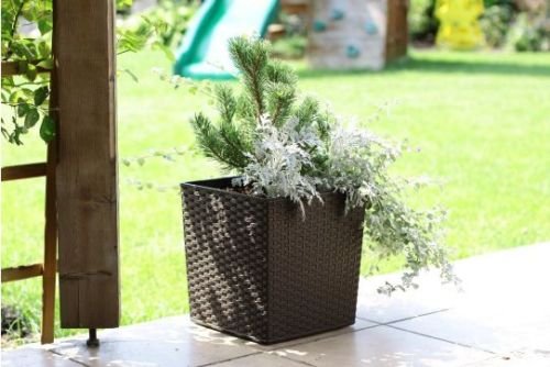 Piccole fioriere vasi in rattan marrone interno esterno giardino fioriera pentola, Brown (Mocha), (W)24 x (H)25cm